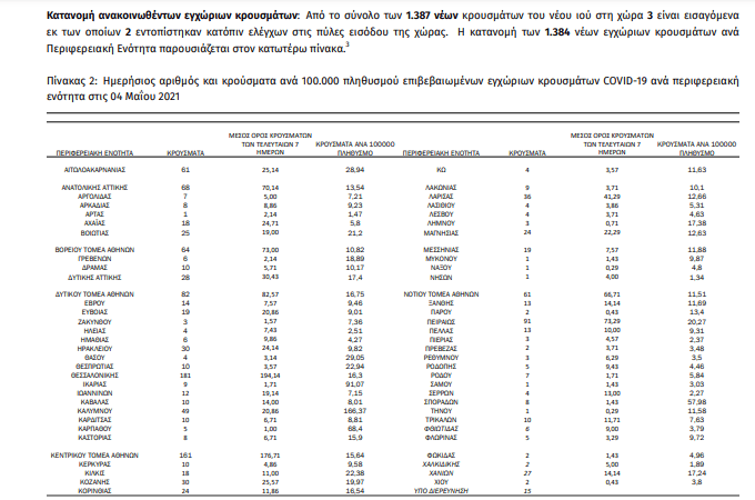 Οι νέοι θάνατοι ασθενών με COVID-19 είναι 81, ενώ από την έναρξη της επιδημίας έχουν καταγραφεί συνολικά 10.668 θάνατοι. Το 95.4% είχε υποκείμενο νόσημα ή/και ηλικία 70 ετών και άνω.