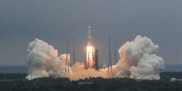 Απομεινάρια του μεγαλύτερου πυραύλου της Κίνας έπεσαν τα ξημερώματα της Κυριακής στον Ινδικό Ωκεανό, ενώ το μεγαλύτερο μέρος του πυραύλου καταστράφηκε κατά την επανείσοδό του στην ατμόσφαιρα της Γης, μετέδωσαν κινεζικά κρατικά μέσα ενημέρωσης.