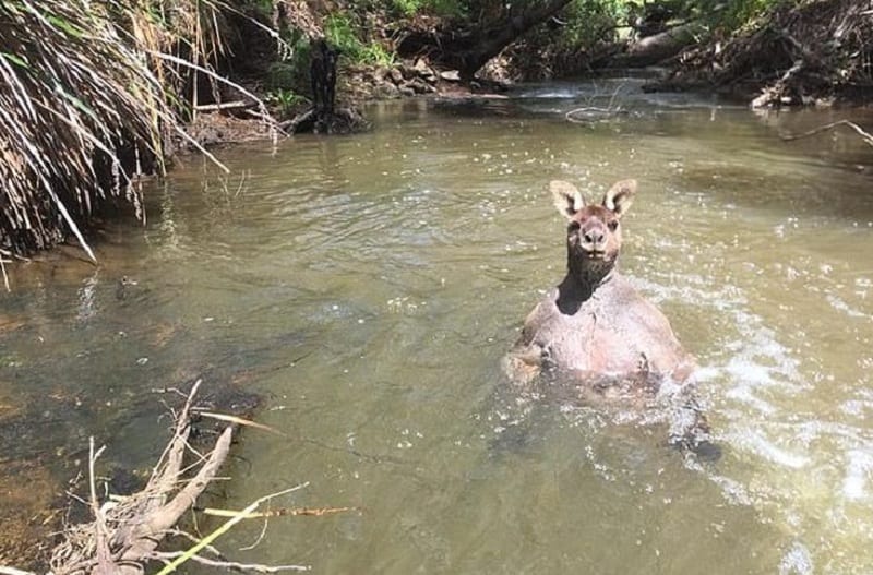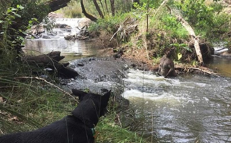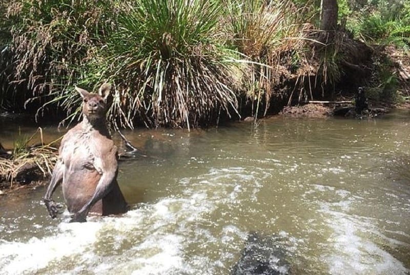 Ο Τζάκσον Κίνγκσλει Βίνσεντ δημοσίευσε στο Facebook την εμπειρία που είχε εκείνος και ο σκύλος του και τη συνάντηση με το απίστευτα μυώδες ζώο. Παρόλο που το καγκουρό ενστικτωδώς μπήκε σε ένα ποτάμι για να γλυτώσει, η στάση του σώματός του δείχνει πως είναι έτοιμο για μάχη.