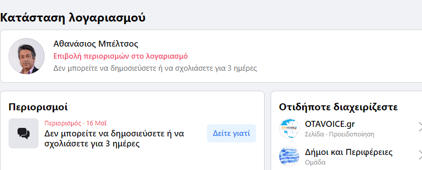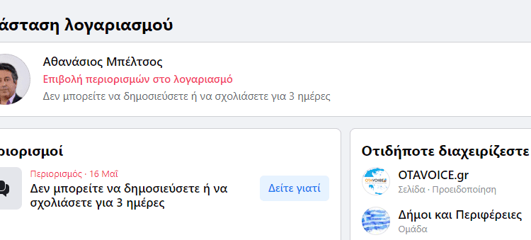 Όπως μας λέει ο παθών δεν είναι η πρώτη φορά και μάλιστα θύμα αναίτια ήταν και η σελίδα του otavoice.gr πριν κάποιους μήνες, όπου χωρίς να υπάρξει κάποια αιτία υπέστη αποκλεισμό, ο οποίος άρθηκε μετά από 72 ώρες δίχως να υπάρξει πειστική απάντηση από τους υπεύθυνους της πλατφόρμας.