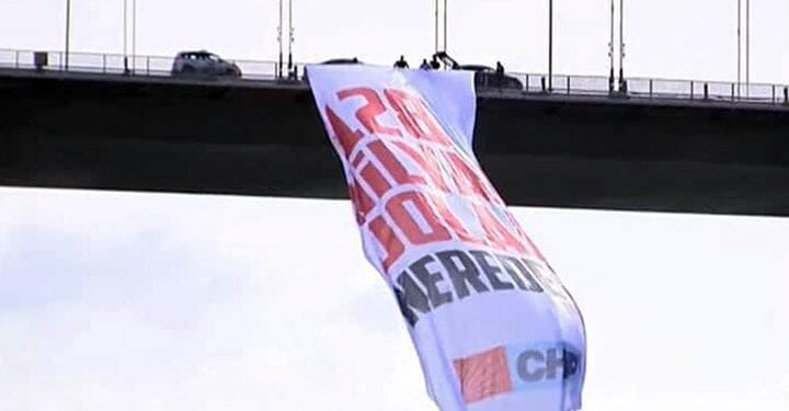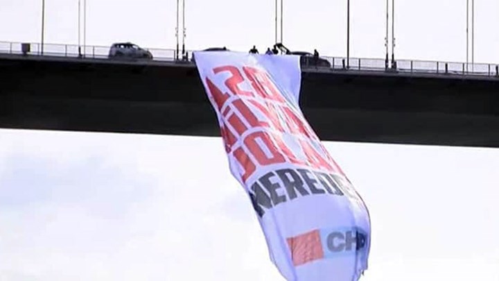 🔴 Köprüye pankartı CHP’li milletvekilleri Ali Mahir Başarır, Sera Kadıgil ve Mahmut Tanal astı.