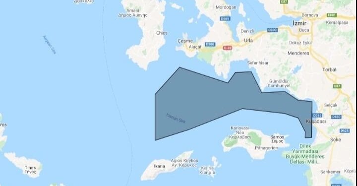Ο τουρκικός υδρογραφικός σταθμός Σμύρνης εξέδωσε NAVTEX για ωκεανογραφικές έρευνες του ιδιωτικού σκάφους Tubitak Marmara, η οποία έχει ισχύ από 31 Μαΐου έως 21 Ιουνίου και εσωκλείει την θαλάσσια περιοχή ανάμεσα από Χίο – Ικαρία – Σάμο, εκτίνεται κυρίως στα τουρκικά χωρικά ύδατα κι ένα μικρό τμήμα από διεθνή ύδατα, που όμως περιλαμβάνουν την ελληνική ΑΟΖ.