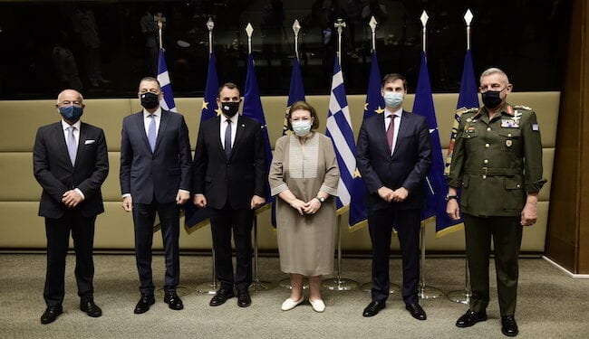 Παρόντες ήταν επίσης ο Υφυπουργός Εθνικής Αμύνης κ. Αλκιβιάδης Στεφανής, ο Αρχηγός ΓΕΕΘΑ Στρατηγός Κωνσταντίνος Φλώρος, ο Αρχηγός ΓΕΑ Αντιπτέραρχος (Ι) Γεώργιος Μπλιούμης, ο Αρχηγός ΓΕΣ Αντιστράτηγος Χαράλαμπος Λαλούσης και ο Αρχηγός ΓΕΝ Αντιναύαρχος Στυλιανός Πετράκης ΠΝ.