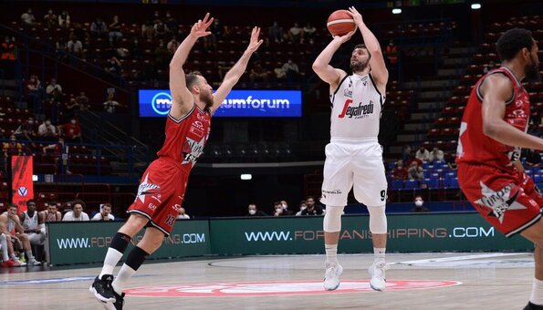 Οι γηπεδούχοι έχουν εκπλήξει ευχάριστα πετυχαίνοντας δύο νίκες στο Μιλάνο, προηγούνται 2-0 και έχουν το πάνω χέρι για την κατάκτηση του τίτλου, ο οποίος θα κριθεί στις 4 νίκες. Επικράτησαν 77-83 το Σάββατο και 72-83 τη Δευτέρα με πρωταγωνιστές τους Τεόντοσιτς και Μπελινέλι.