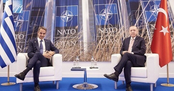 Ολοκληρώθηκε η συνάντηση του πρωθυπουργού Κυριάκου Μητσοτάκη με τον Πρόεδρο της Τουρκίας Ταγίπ Ρετζέπ Ερντογάν, στις Βρυξέλλες. Η συνάντηση ξεκίνησε περίπου στις 5:20 μ.μ. μετά το πέρας των εργασιών της Συνόδου Κορυφής του ΝΑΤΟ.
