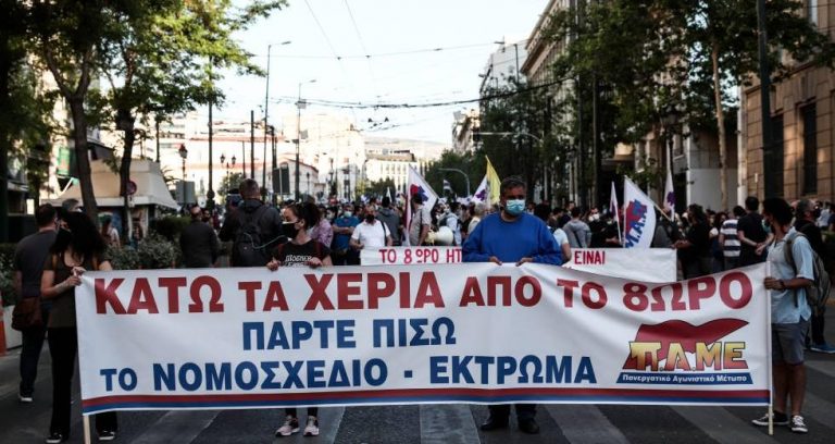 Σε εξέλιξη ο δεύτερος γύρος των κινητοποιήσεων στο κέντρο της Αθήνας ενάντια στο εργασιακό νομοσχέδιο που ψηφίζεται το βράδυ στην Βουλή. Πριν από λίγο ξεκίνησε η πορεία του ΠΑΜΕ προς το Σύνταγμα, με στόχο την Βουλή ενώ υπάρχουν σε εξέλιξη και άλλες κινητοποιήσεις στο κέντρο της πρωτεύουσας με αίτημα να μην ψηφιστεί ο αντιεργατικός νόμος Χατζηδάκη. .