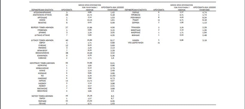 Τα νέα εργαστηριακά επιβεβαιωμένα κρούσματα της νόσου που καταγράφηκαν τις τελευταίες 24 ώρες είναι 469, εκ των οποίων 2 εντοπίστηκαν κατόπιν ελέγχων στις πύλες εισόδου της χώρας. Ο συνολικός αριθμός των κρουσμάτων ανέρχεται σε 417.706 (ημερήσια μεταβολή +0.1%), εκ των οποίων 51.2% άνδρες. Με βάση τα επιβεβαιωμένα κρούσματα των τελευταίων 7 ημερών, 26 θεωρούνται σχετιζόμενα με ταξίδι από το εξωτερικό και 951 είναι σχετιζόμενα με ήδη γνωστό κρούσμα.