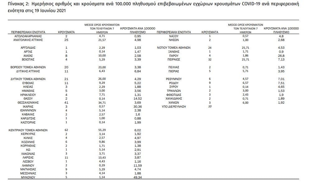 Με βάση τα επιβεβαιωμένα κρούσματα των τελευταίων 7 ημερών, 24 θεωρούνται σχετιζόμενα με ταξίδι από το εξωτερικό και 933 είναι σχετιζόμενα με ήδη γνωστό κρούσμα.