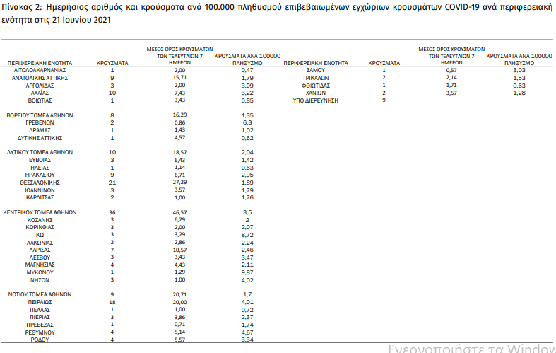 Με βάση τα επιβεβαιωμένα κρούσματα των τελευταίων 7 ημερών, 32 θεωρούνται σχετιζόμενα με ταξίδι από το εξωτερικό και 672 είναι σχετιζόμενα με ήδη γνωστό κρούσμα.