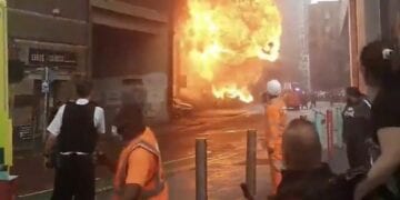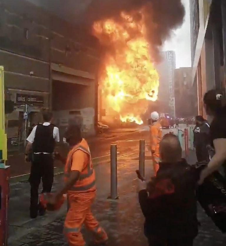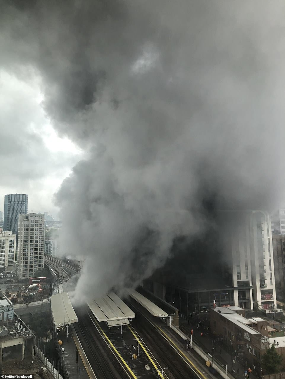 Ένας μάρτυρας της φλόγας στις καμάρες των σιδηροδρόμων κοντά στο σταθμό μαγνητοσκόπησε τη στιγμή της έκρηξης σήμερα το απόγευμα, ενώ άλλοι δημοσίευσαν εικόνες από τα τεράστια σύννεφα καπνού που γεμίζουν τους ουρανούς της πρωτεύουσας.