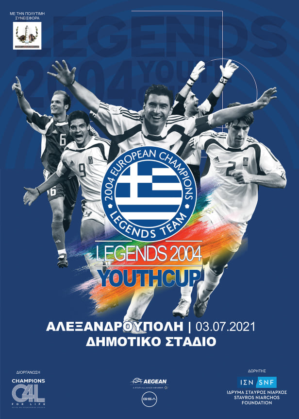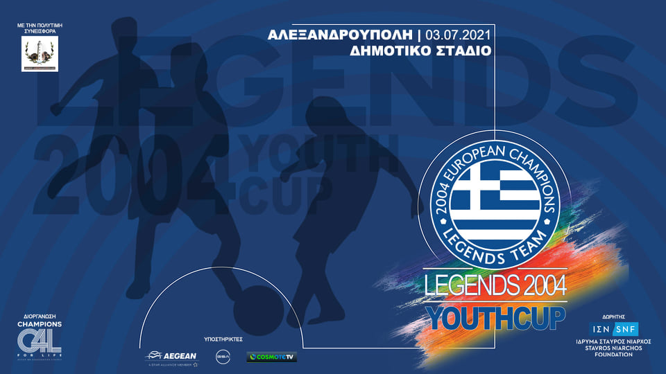 Το Legends 2004 Youth Cup διοργανώνεται από την Αστική Μη Κερδοσκοπική Εταιρεία “Champions For Life” με την δωρεά του Ιδρύματος Σταύρος Νιάρχος. Συνοδοιπόρος, με πολύτιμη συνεισφορά σε αυτό το τουρνουά ο Δήμος Αλεξανδρούπολης.