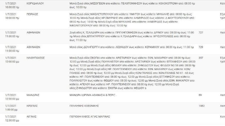 Συγκεκριμένα, διακοπές ρεύματος θα γίνουν στον Δήμο Αθηναίων, τον Πειραιά, τον Κορυδαλλό, την Ηλιούπολη, τη Μάνδρα, την Κρωπία, την Αίγινα. Οι πολίτες για να ενημερωθούν για τις ώρες κατά τις οποίες θα υπάρχει διακοπή ηλεκτροδότησης μπορούν να δουν τον παρακάτω πίνακα.