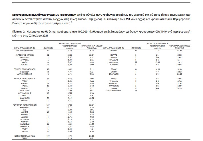 Αναλυτικά τα νέα κρούσματα εντοπίστηκαν: