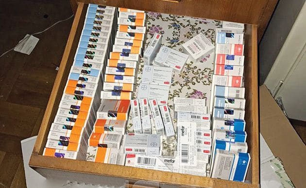 Ειδικότερα, από την έφοδο των υπαλλήλων της Ειδικής Γραμματείας ΣΔΟΕ Περιφερειακής Διεύθυνσης Αττικής και Αιγαίου, στην παράνομη… φαρμακαποθήκη στο Γκάζι εντοπίστηκαν και κατασχέθηκαν 570 (!) σκευάσματα διαφόρων φαρμάκων, κυρίως αναβολικά και άλλα, τα οποία σχετίζονται με την αντιμετώπιση της στυτικής δυσλειτουργίας, η αξία των οποίων υπερβαίνει τα 35.000 ευρώ!