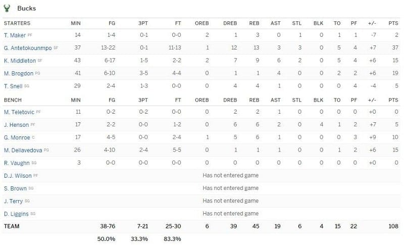 Ο αγώνας ήταν ένα ντέρμπι που επισκιάστηκε στο ξεκίνημά του από το μήνυμα του Γκόρντον Χέιγουορντ από το νοσοκομείο όπου νοσηλεύεται, με τις δύο ομάδες στο καθαρά αγωνιστικό μέρος να πηγαίνουν σχεδόν πόντο-πόντο. Στα δύσκολα όμως μίλησε ο Γιάνναρος που πραγματοποιώντας μαγική εμφάνιση οδήγησε τους Μπακς στην μεγάλη νίκη. Για τους θριαμβευτές εκτός του Greek Freak πολλή καλή εμφάνιση είχαν οι Μπρογκντόν με 19 και Μίντλεντον και Ντελαβεντόβα με 15. Για τους ηττημένους που ακόμα να συνέλθουν από τον σοκαριστικό τραυματισμό του Χέιγουορντ ο Μπράουν είχε 18, τον ακολούθησε ο Ίρβινγκ με 17, ενώ 15 είχε ο Ροζιέ.