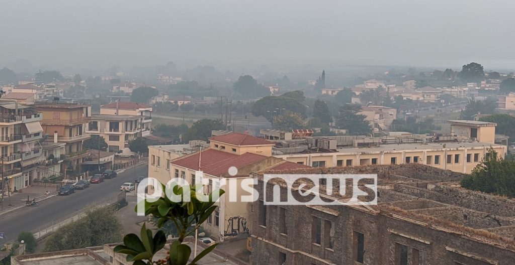 Αποπνικτική ατμόσφαιρα λόγω καπνού σε πολλές περιοχές δυτικά της φωτιάς και στην πόλη του Πύργου.