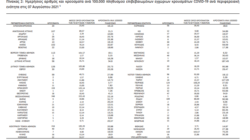 Με βάση τα επιβεβαιωμένα κρούσματα των τελευταίων 7 ημερών, 129 θεωρούνται σχετιζόμενα με ταξίδι από το εξωτερικό και 2.185 είναι σχετιζόμενα με ήδη γνωστό κρούσμα.