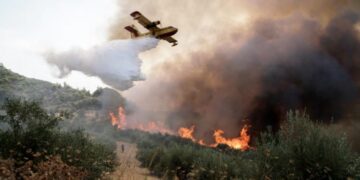 Ξεπερνά τα 6 χλμ το μέτωπο που φτάνει στη γραμμή Γαλατσώνα- Γερακίου- Γούβες και έχει πλησιάσει περισσότερο στο χωριό Γούβες καίγοντας πευκόφυτη περιοχή.