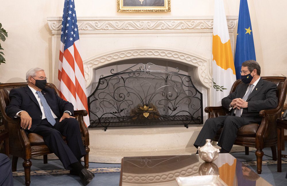 Ο Πρόεδρος Αναστασιάδης τόνισε πως σε όλη τη διάρκεια της καριέρας του ο Γερουσιαστής Μενέντεζ έχει απαιτήσει την απόσυρση των τουρκικών στρατευμάτων από την Κύπρο και την αποκατάσταση των ανθρωπίνων δικαιωμάτων και θεμελιωδών ελευθεριών όλων των Κυπρίων, μέσα από μια βιώσιμη και διαρκή λύση του Κυπριακού, σύμφωνα με τα σχετικά ψηφίσματα των ΗΕ και τις αρχές και αξίες της ΕΕ.