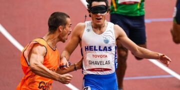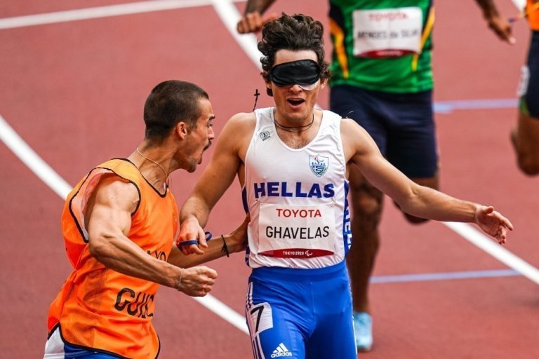 Μαζί με τον Σωτήρη Γκαραγκάνη που είναι ο συνοδός του στον αγώνα, έκαναν εκπληκτική κούρσα και έσπασαν το δικό του παγκόσμιο ρεκόρ που ήταν 10.88 από τον προκριματικό.