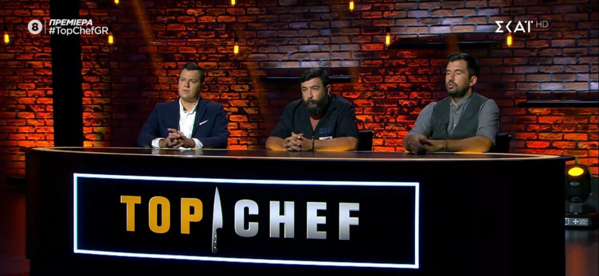 Χωρίς τις αγαπημένες και ενίοτε ίσως και διασκεδαστικές οντισιόν βγήκε χθες στον αέρα του ΣΚΑΪ το νέο μαγειρικό ριάλιτι του σταθμού, Top Chef, κάνοντας πρεμιέρα. Αφού προηγήθηκε το intro των τριών κριτών, του Γιώργου Βενιέρη, του Γκίκα Ξενάκη και του Αστέριου Κουστούδη, είδαμε τους 15 παίκτες (4 κορίτσια και 11 αγόρια) να μπαίνουν άλλοι με άγχος και άλλοι με ορμή στο μεγάλο πλατώ με τις κουζίνες πλάι-πλάι. Αποστολή τους να βγάλουν το πιάτο της ζωής τους.