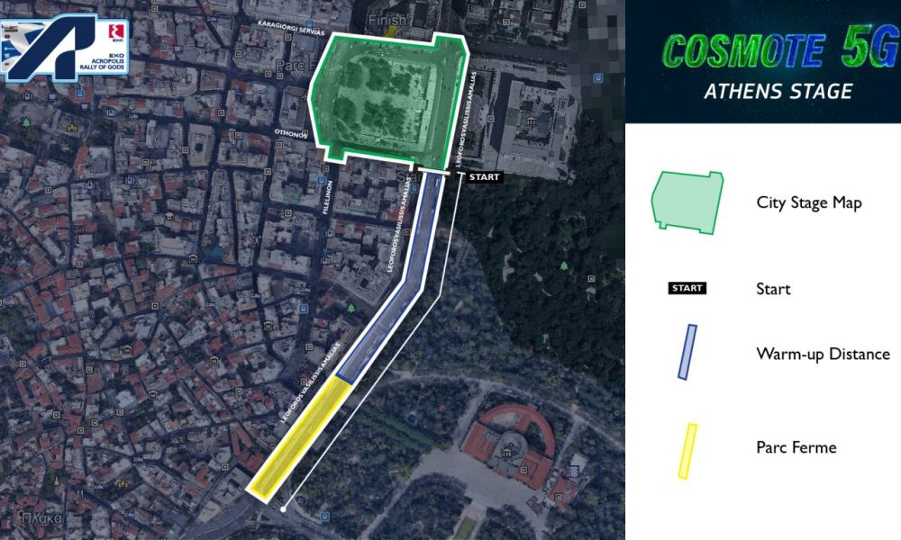 Την Πέμπτη 9 Σεπτεμβρίου 2021 και περί ώρα 18:00΄, θα διεξαχθεί η 1η Ειδική Διαδρομή («COSMOTE 5G Athens Stage») του EKO Acropolis Rally 2021, στη διαδρομή: