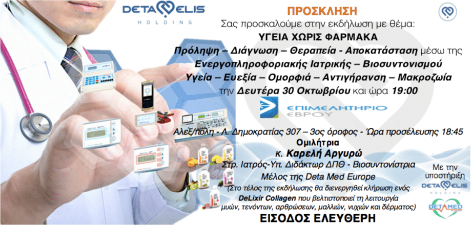 Η Στρ. Ιατρός, Υπ. Διδάκτωρ ΔΠΘ, Βιοσυντονίστρια, μέλος του Παγκόσμιου Οργανισμού Υγέιας και μέλος της Deta Med Europe, κ. Καρελή Αργυρώ είναι η πιο κατάλληλη για να μεταφέρει όλες τις πληροφορίες που αφορούν στη μέθοδο του Βιοσυντονισμού και της τεχνολογίας που τον συνοδεύει.