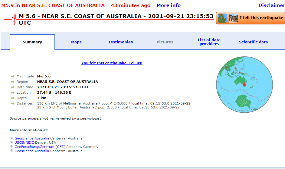 Ισχυρός σεισμός μεγέθους 5,9 βαθμών της κλίμακας Ρίχτερ ταρακούνησε την πόλη της Μελβούρνης και τις γύρω περιοχές.