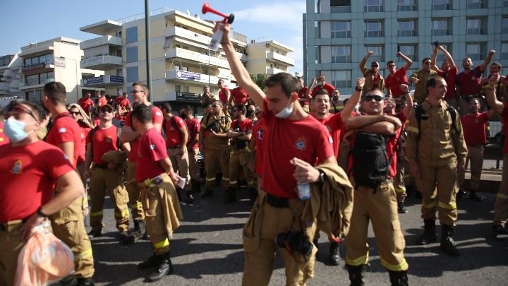 Συγκέντρωση διαμαρτυρίας πραγματοποιούν οι συμβασιούχοι πυροσβέστες έξω από το υπουργείο Κλιματικής Κρίσης και Πολιτικής Προστασίας, καταγγέλλοντας την κυβερνητική πολιτική η οποία τους ήρωες των πυρκαγιών τους αντιμετωπίζει σαν αναλώσιμα. «Ήρωες στις φωτιές ξεχασμένοι το χειμώνα», γράφει χαρακτηριστικά ένα πανό των συγκεντρωμένων πυροσβεστών.