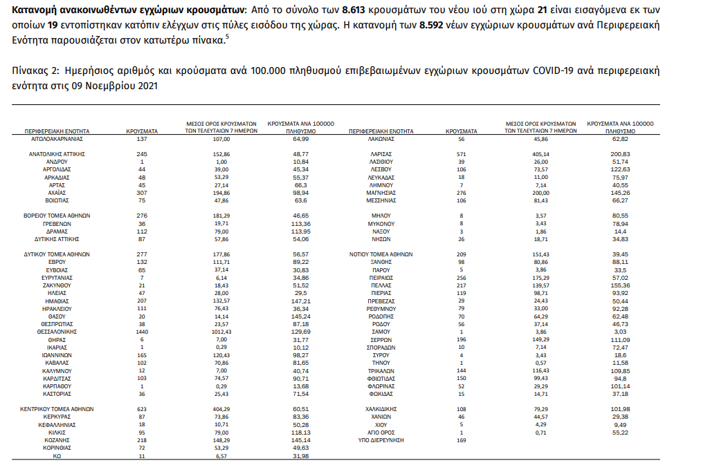 Αναλυτικά τα νέα κρούσματα εντοπίστηκαν: