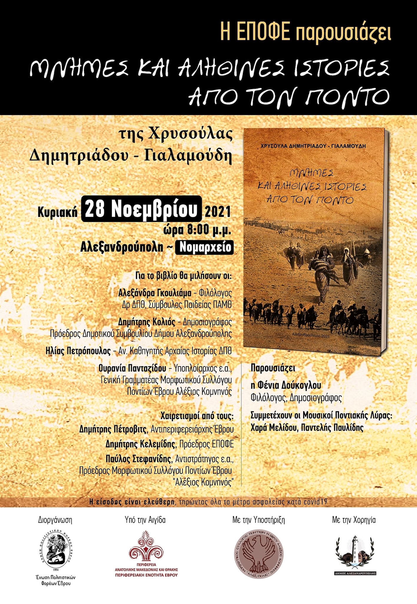 Η Ε.ΠΟ.Φ.Ε. παρουσιάζει «ΜΝΗΜΕΣ ΚΑΙ ΑΛΗΘΙΝΕΣ ΙΣΤΟΡΙΕΣ ΑΠΟ ΤΟΝ ΠΟΝΤΟ»