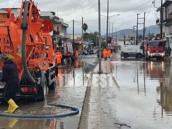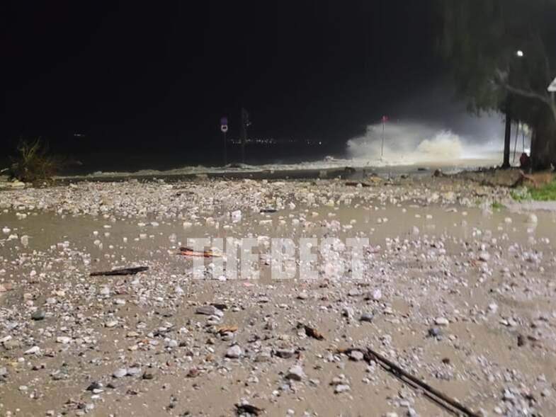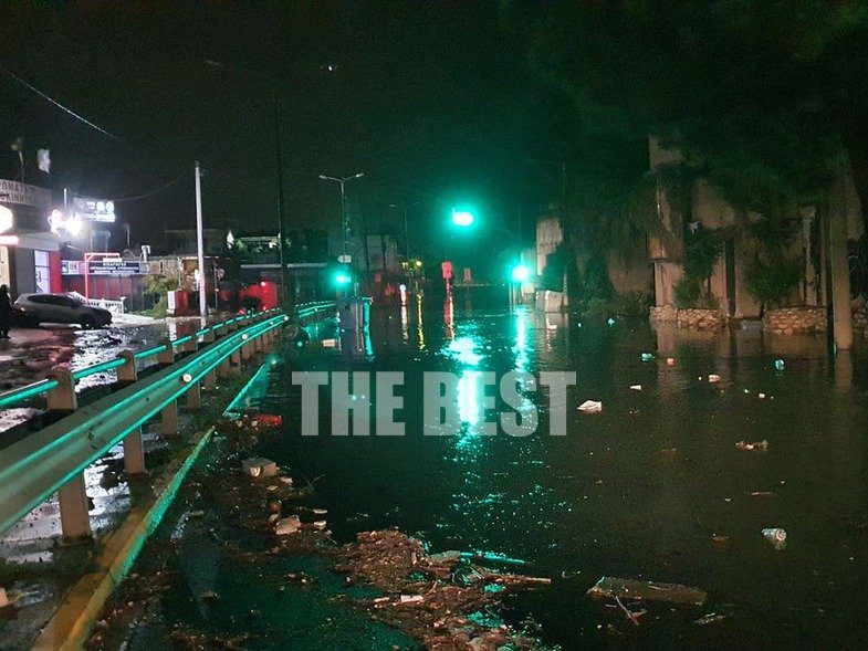 Στις 3.30 τα ξημερώματα η Ηρώων Πολυτεχνείου πριν την Κανελλοπούλου είχε γεμίσει νερά. Απροσπέλαστος ήταν και ο δρόμος στην Πλαζ όπου γέμισε και με πέτρες και χαλίκια ενώ αυτοκίνητα γυρνούσαν πίσω.