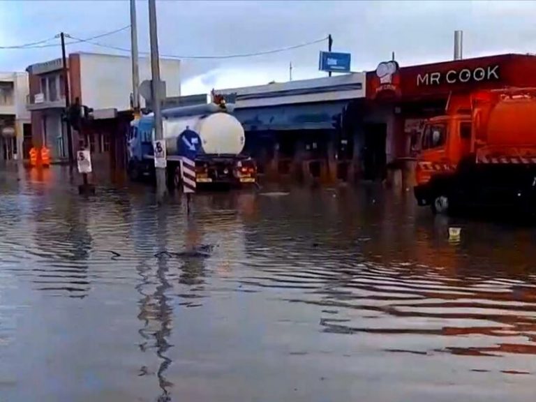 Στον παραλιακό δρόμο του Ρίου χθες το βράδυ, εργαζόμενοι του Δήμου, απεγκλώβισαν ζευγάρι από αυτοκίνητο, που είχε παγιδευτεί από τα νερά και κινδύνεψε να πνιγεί».