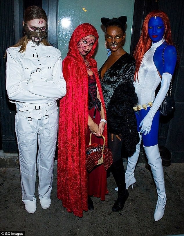 Η Sara Sampaio, μεταμφιέστηκε σε μια τρομακτική κοκκινοσκουφίτσα, με λευκά μάτια και πληγές στο πρόσωπο, η Jasmine Tooks ως η θρυλική Catwoman, ενώ η μελαχρινή καλλονή Lais Ribeiro, έβαψε το κορμί της μπλε, καθώς εμπνεύστηκε από τη θρυλική ηρωίδα Mystique από τις ταινίες των X-Men.