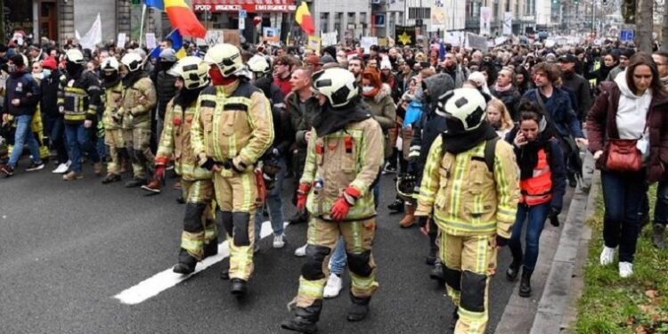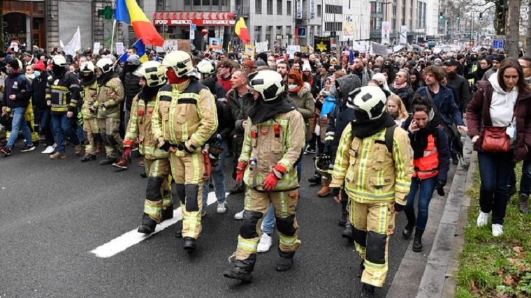 Firefighters, health care workers, and citizens packed the streets of Brussels in a demonstration to end COVID law and mandatory vaccinations. pic.twitter.com/0kIcLppVa6