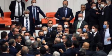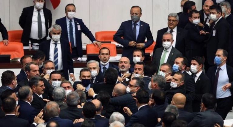 Το σκηνικό πυροδότησε βουλευτής της αξιωματικής αντιπολίτευσης που αποκάλεσε τον υπουργό Εσωτερικών «υπουργό των εγκληματιών», ενδεικτικό της δεινής κατάστασης της οικονομίας και της πόλωσης, με τη δημοτικότητα του Ερντογάν να έχει πάρει την κατηφόρα.