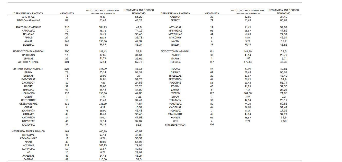 Στην Αττική καταγράφηκαν 1.604 νέα κρούσματα. Ακολουθούν η Θεσσαλονίκη με 831 και η Αχαΐα με 147.
