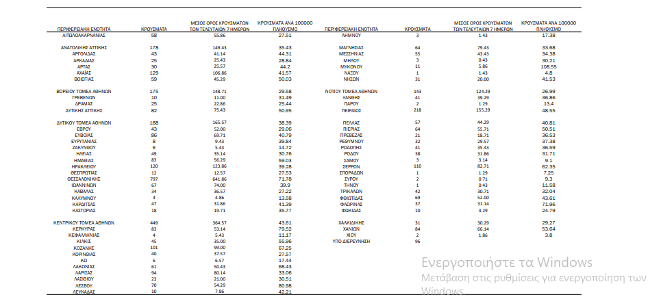Οι νέοι θάνατοι ασθενών με COVID-19 είναι 96, ενώ από την έναρξη της επιδημίας έχουν καταγραφεί συνολικά 19.651 θάνατοι. Το 95.3% είχε υποκείμενο νόσημα ή/και ηλικία 70 ετών και άνω.