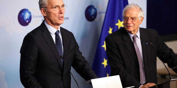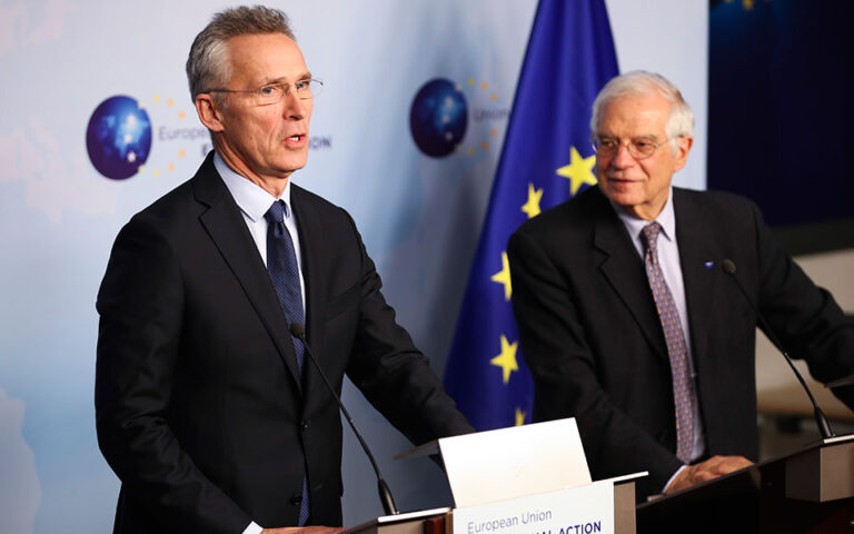 Η Ευρωπαϊκή Ένωση και το ΝΑΤΟ επανέλαβαν την υποστήριξή τους στην Ουκρανία, η οποία απειλείται από μια ενίσχυση των στρατιωτικών ικανοτήτων της Ρωσίας, γειτονική χώρα με την οποία είναι σε σύγκρουση από το 2014.