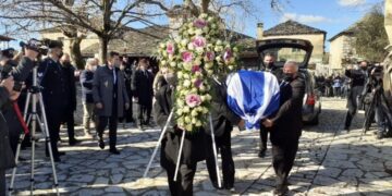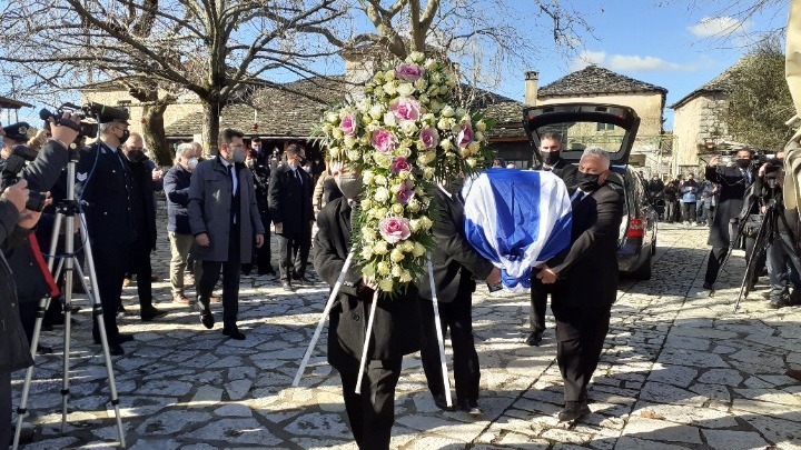 Φίλοι, στενοί συνεργάτες του και οι νησιώτες υποδέχτηκαν τη σορό του στον Ιερό Ναό Κοιμήσεως της Θεοτόκου, όπου αυτήν την ώρα τελείται τρισάγιο χοροστατούντος του μητροπολίτη Ιωαννίνων Μάξιμου.
