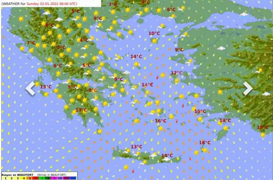 Καιρός: Γενικά αίθριος. Ανεμοι: Αρχικά βορειοδυτικοί 4 με 6 μποφόρ με βαθμιαία εξασθένηση και από το απόγευμα μεταβλητοί ασθενείς. Θερμοκρασία: Από 07 έως 15 βαθμούς Κελσίου.