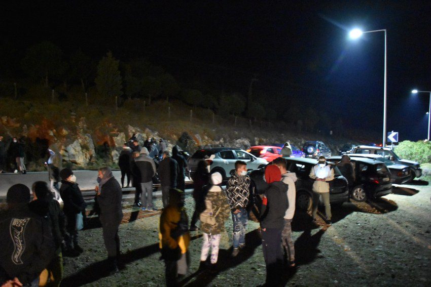 Από νωρίς το απόγευμα εκατοντάδες κάτοικοι συγκεντρώνονται στο σημείο από όλα τα μέρη της Χίου, δηλώνοντας συμπαράσταση στον αγώνα των κατοίκων της Συκιάδας, της Λαγκάδας, του Βροντάδου και των Καρδαμύλων.
