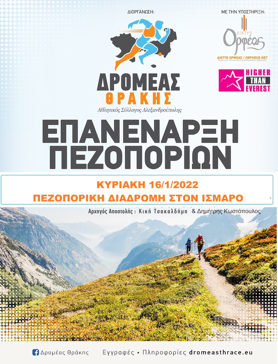 Με Εκκίνηση και Τερματισμό την κεντρική πλατεία της Μαρώνειας, θα περπατήσουμε τον Ίσμαρο την Κυριακή 16/1.