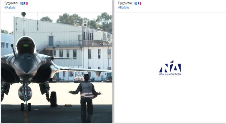 Ο Πρωθυπουργός Κυριάκος Μητσοτάκης με μια πράξη υπέρμετρης αλαζονείας και κομματικής προπαγάνδας, αναγγέλλοντας την άφιξη των μαχητικών, ανάρτησε διαφημιστικό στο οποίο υπάρχει το λογότυπο της Νέας Δημοκρατίας. Μόνο που δεν αγόρασε η Νέα Δημοκρατία τα Rafale αλλά ο ελληνικός λαός. Αυτός θα πληρώνει για χρόνια τις δόσεις. Η Νέα Δημοκρατία ας πληρώσει καλύτερα τα χρέη 350 εκατομμυρίων ευρώ σε τράπεζες και δημόσιους οργανισμούς , ίση με την αξία των 6 γαλλικών μαχητικών. Εκτός και αν χρεώθηκε η Πειραιώς ή ο οικογενειακός προϋπολογισμός του Μητσοτακέικου, την προμήθεια των γαλλικών αεροσκαφών, οπότε το έργο αλλάζει…