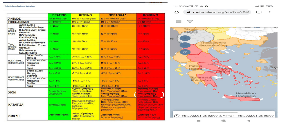 Ειδικότερα, το δεύτερο κύμα χαρακτηρίστηκε με τον υψηλότερο βαθμό προειδοποίησης με βάση τα Ευρωπαϊκά Δεδομένα της Eumetnet με κόκκινο συναγερμό, μέχρι τις πρωινές ώρες της Τρίτης 25 Ιανουαρίου 2022 όπου περιλαμβανόταν η Αττική.