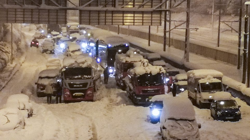 Η απαγόρευση ήρθε πολύ αργά, με το φαινόμενο σε πλήρη εξέλιξη, και αφού είχαν ήδη προκύψει μεγάλα κυκλοφοριακά ζητήματα. Συγκεκριμένα, το κλείσιμο της Νέας Οδού αλλά και της Εθνικής Οδού το πρωί της Δευτέρας, μετακύλησε όλο τον όγκο των βαρέων οχημάτων στην Αττική Οδό, με αποτέλεσμα στις 09.00 π.μ. και με τη χιονοκαταιγίδανα έχει κάνει νωρίτερα την εμφάνισή της, να έχουμε μια πρωτοφανή κίνηση 38.557 οχημάτων και 3.772 φορτηγών τα οποία μέχρι τις 14.00 έφτασαν τα 68.000 οχήματα, 5.700 φορτηγά και 35 εκχιονιστικά ανάμεσά τους που προσπαθούσαν να επιχειρήσουν. Και όλα τα παραπάνω χωρίς καμία απαγόρευση κυκλοφορίας ή σύσταση μη κυκλοφορίας στους δρόμους από την Πολιτεία την προηγούμενη μέρα.