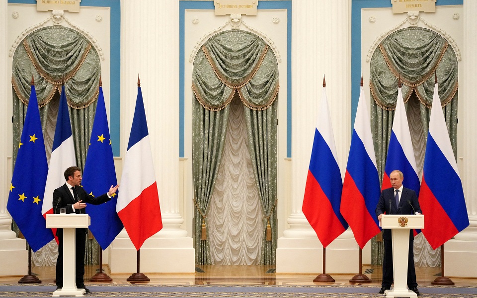 Ο πρόεδρος της Γαλλίας ταξίδεψε στη ρωσική πρωτεύουσα για να συζητήσει με τον Βλαντίμιρ Πούτιν εν μέσω της αντιπαράθεσης της Μόσχας με τη Δύση για τη συγκέντρωση ρωσικών στρατιωτικών δυνάμεων κοντά στα σύνορα της Ουκρανίας και των αξιώσεων του Κρεμλίνου για την παροχή «εγγυήσεων ασφαλείας» από την Ουάσινγκτον και το NATO.