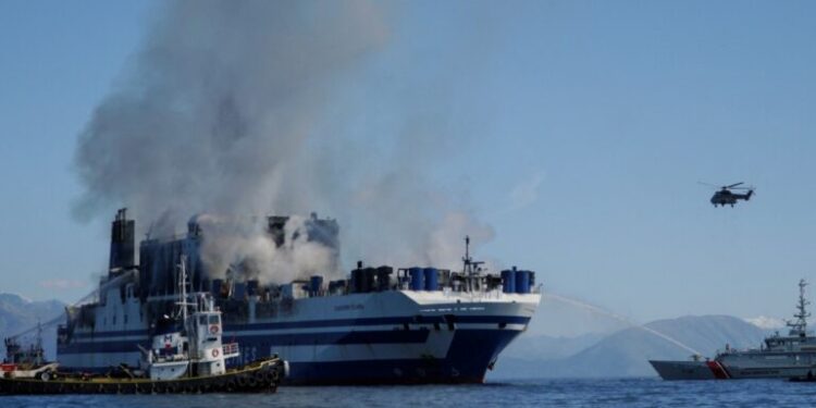 Συνεχίζεται το έργο της πυρόσβεσης στο επιβατηγό-οχηματαγωγό πλοίο Euroferry Olympia στο οποίο χθες εκδηλώθηκε πυρκαγιά, πιθανόν στο τρίτο κατάστρωμα, ενώ έπλεε κοντά στην Ερεικούσα κατά την εκτέλεση του προγραμματισμένου δρομολογίου του από την Ηγουμενίτσα προς το Μπρίντεζι.