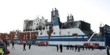 Η διαδικασία των ερευνών από άνδρες της ΕΜΑΚ στο εσωτερικό του πλοίου προχωρά ενώ το άνοιγμα του καταπέλτη θα γίνει όταν πέσουν οι τιμές του διοξειδίου του άνθρακα στο εσωτερικό και δεν θα υπάρχει κίνδυνος μίας νέας αναπύρωσης της φωτιάς.