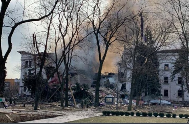 Το θέατρο της Μαριούπολης βομβαρδίστηκε στις 16 Φεβρουαρίου. Από τον αεροπορικό βομβαρδισμό καταστράφηκε το κεντρικό τμήμα του θεάτρου, ενώ από την κατάρρευση αποκλείσθηκε η είσοδος του καταφυγίου που βρίσκεται στο υπόγειο του κτιρίου , στο οποίο έμεναν εκατοντάδες άνθρωποι, κυρίως γυναίκες και παιδιά. Λόγω των συνεχών πυροβολισμών οι διασώστες δεν μπορούσαν να αρχίσουν το έργο τους.
